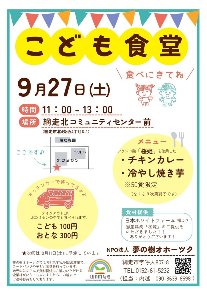 7月と8月に開催し大変好評だった子ども食堂を、今月も開催します。